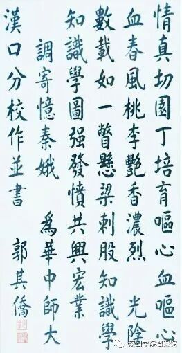 2010-SW11-YJ-59 “情真切 园丁培育呕心血 呕心血 春风桃李艳香浓烈 光阴数载如一瞥 悬梁刺股知识学 知识学 图强发愤共兴宏业调寄忆秦娥。”